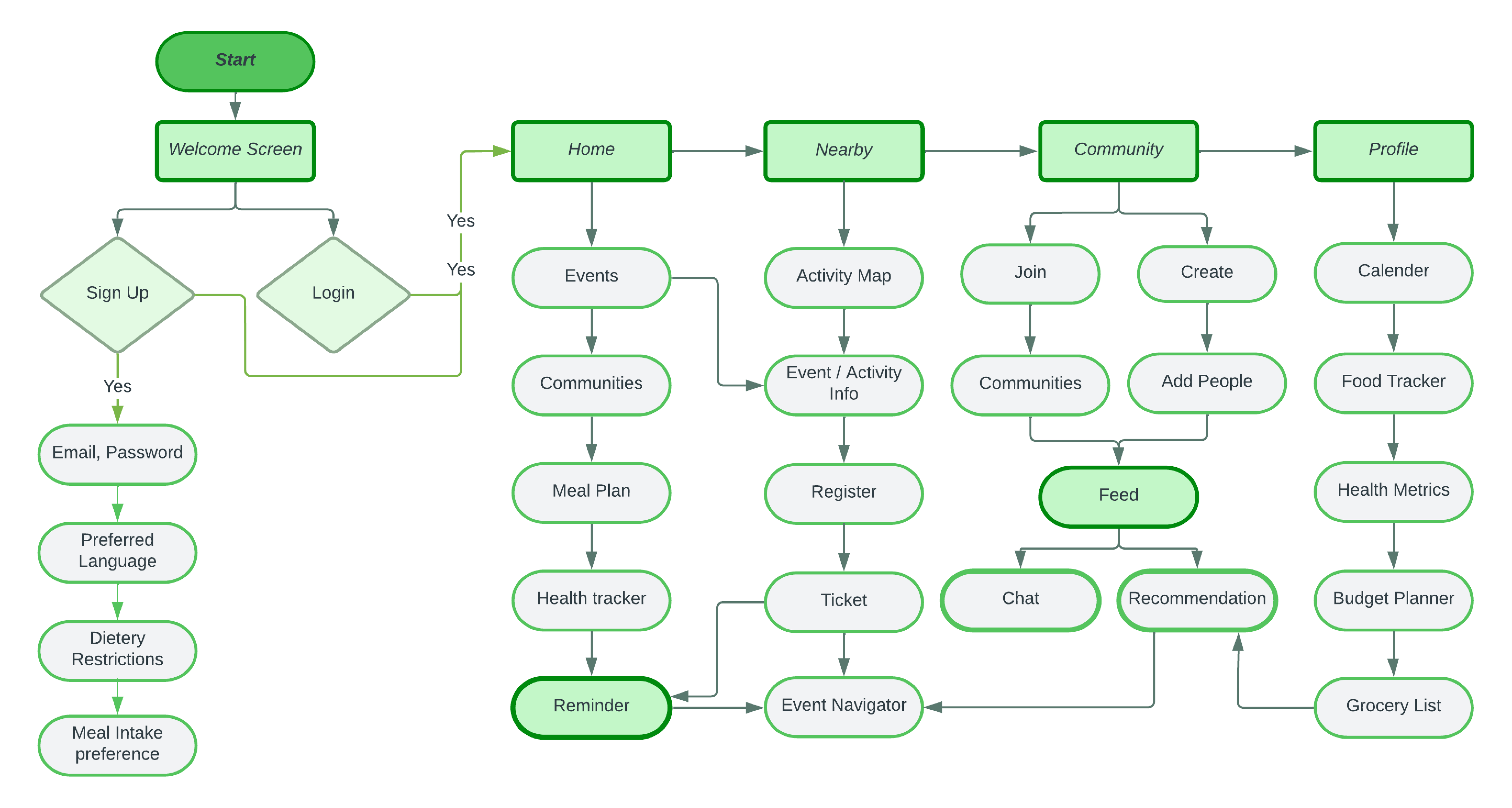 The user flow diagram was focused on creating a simple yet useful experience for the users after analyzing their needs.