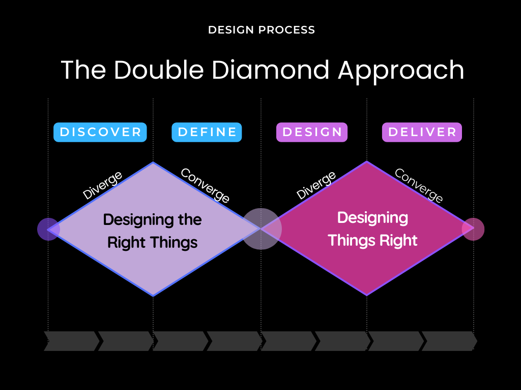We followed the Double Diamond structure to understand the target users and went by the divergent and convergent thinking mechanisms. The Diverge phase allowed us to think broadly while keeping an open mind, and consider anything and everything. The Converge phase brought back the focus towards the key problems and solutions.