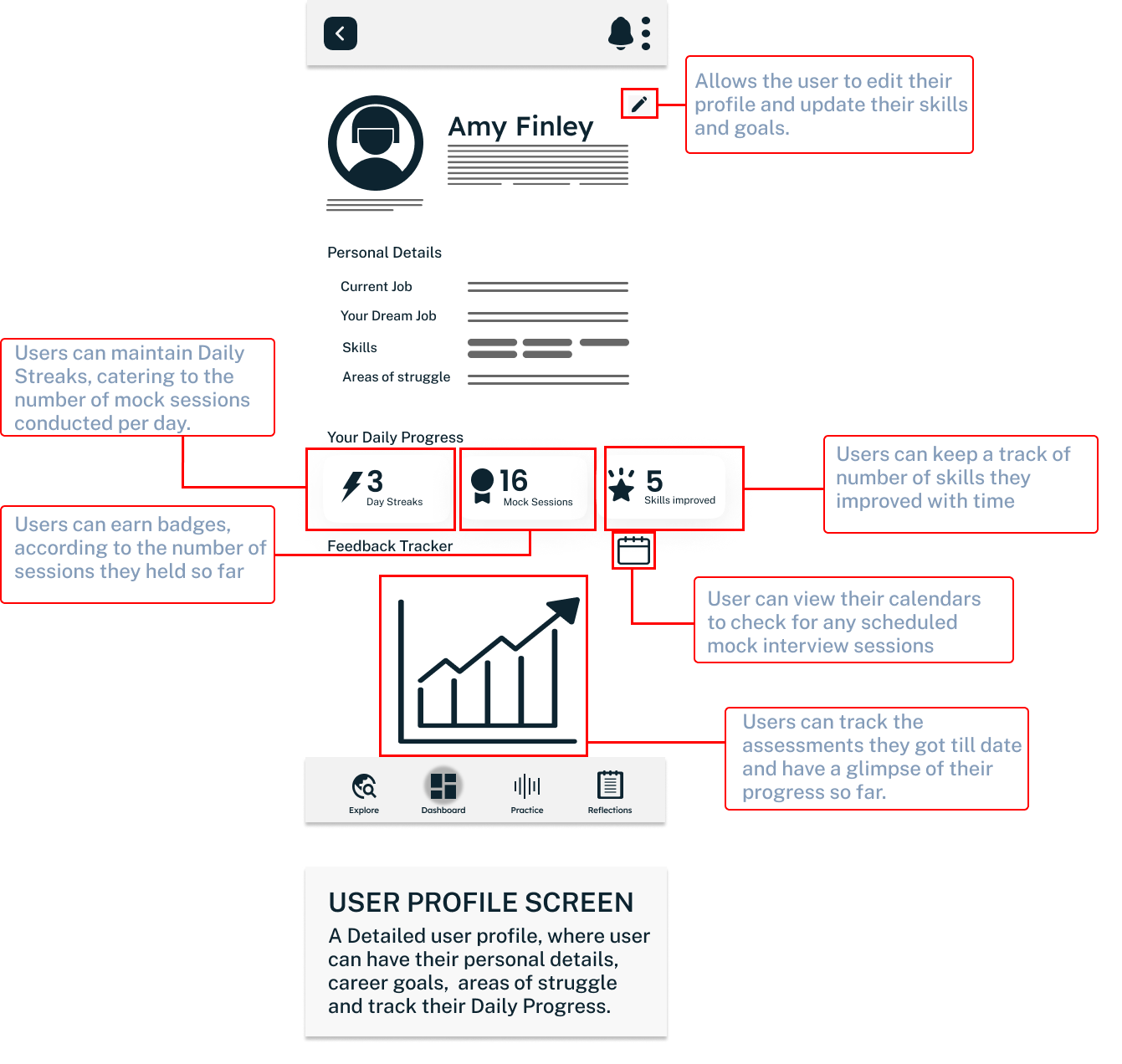 - set up my profile, industry preferences, current and dream job & individual areas of struggle